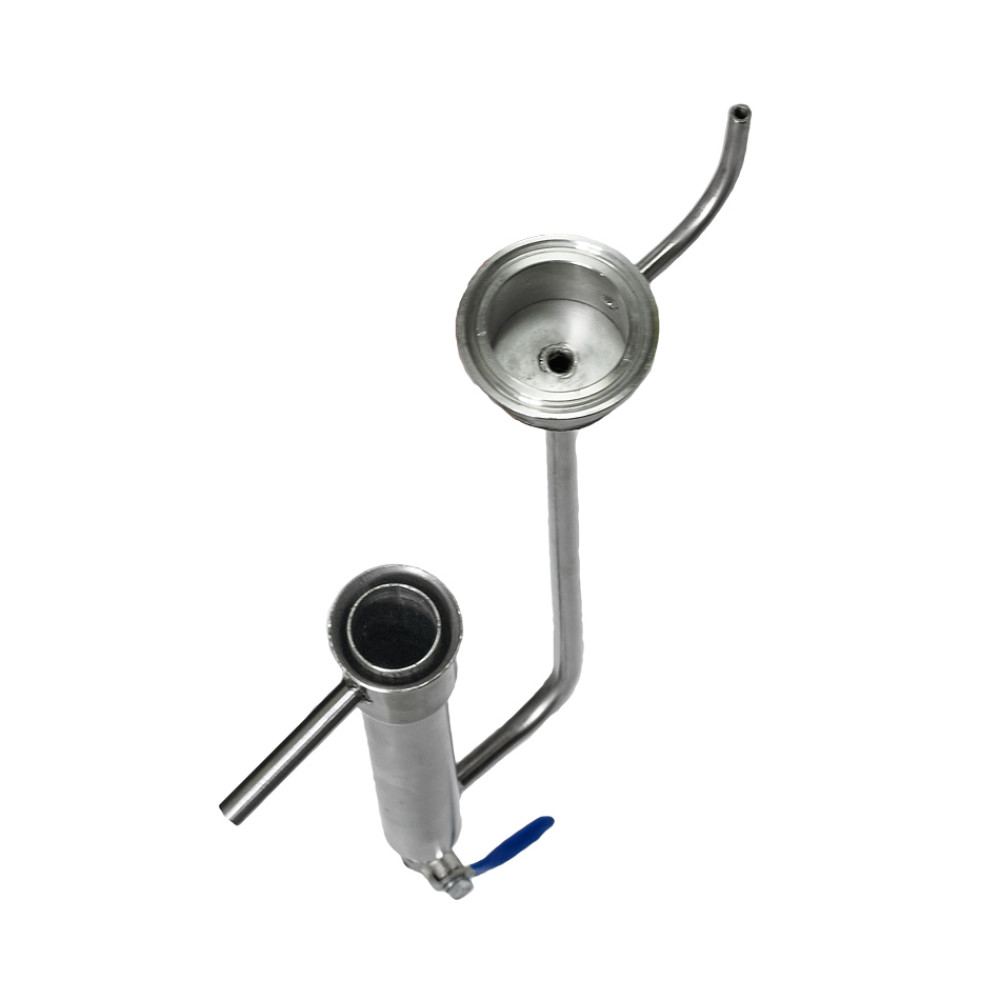 After the start of the distillation process, moonshine or alcohol entering the stainless device Parrot will fill the main cylinder, in which it is necessary to place the alcohol hydrometer, and overflow the edge of the main cylinder into the outer sleeve and begin to flow through the stainless tube into the container for collecting the finished product. The alcohol meter will pop up and show the instantaneous strength of the product at the current time. Throughout the entire period of ferrying, you will be able to control the readings of the alcohol meter to continuously monitor the strength of the moonshine. The "Parrot" continuous strength control device under a 1.5 " CLAMP is attached directly to the shell and tube cooler with a 1.5" clamp clamp.