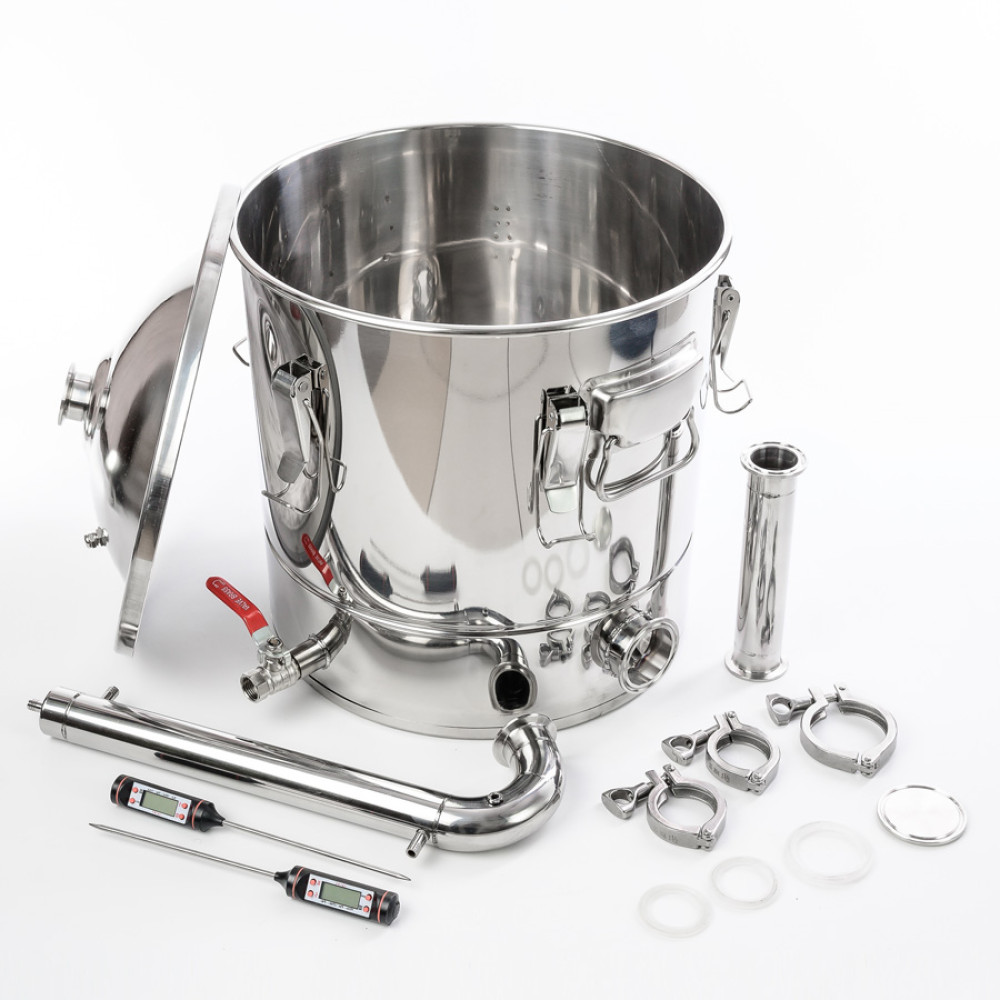15. Watch the thermometer on the distillation cube. If the reading exceeds 100 ° C, turn off the heating source and wait for the brazier to cool down, disassemble it to perform an inspection to find a blockage.