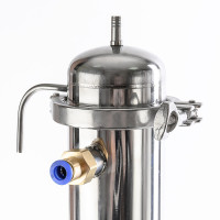 A powerful 3-inch shell-and-tube cooler with a length of 40 cm, inside which there are 12 tubes with a bore diameter of 10 mm, allows you to utilize up to 10 kW of supplied heating power per distillation cube with relatively small volumes of water consumption (depending on the temperature of the supplied water). A diopter with a built-in liquid take-off unit allows the user to set the column to a “pre-flooded” state, which will increase the separating ability of the column, which will allow 96.6% alcohol to be removed at high speed. The combination of a liquid take-off and a 2-in-1 diopter simplifies column assembly and reduces the number of fittings. The jacket-type aftercooler has a diameter of 25 mm and a length of 350 mm, which indicates its high performance.