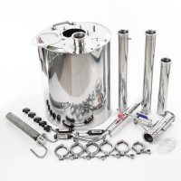 In the design of a rectifier with a dimrot 20/110/t (KLAMP 2 inches), all the nuances are thought out, the delivery set includes 3 thermometers, 2 drawers, a reflux condenser, a once-through refrigerator, a distillation cube. The cube is equipped with carrying handles, a drain cock and a sturdy lid. Even a heavy distillation column will be rigidly fixed to the cube lid.