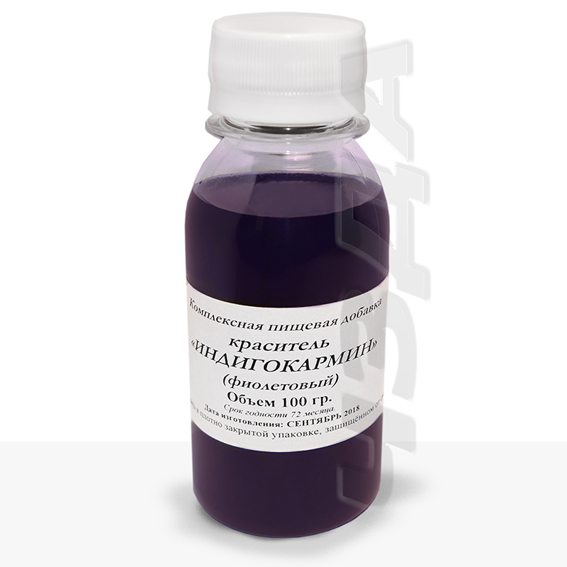 Indigo Carmine (Indigotin) - indigoylsulfonic acid disodium salt. When dissolved in water gives solutions of intense blue color. It is used in the confectionery industry, in the technology of beverages (it has a low resistance to reducing sugars and ..