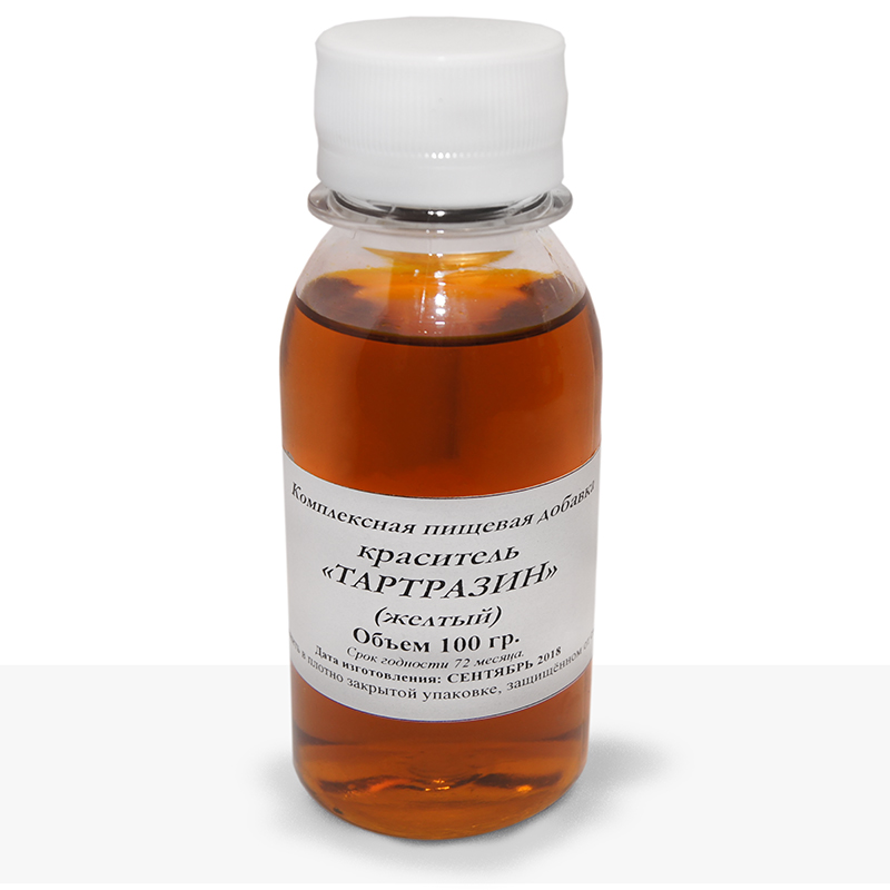 Tartrazine is a food ingredient under the marking code E-102. The food substance is synthesized chemically from a component of natural coal - tar. The substance is perfectly soluble in water, when interacting with direct sunlight, it disintegrates, s..